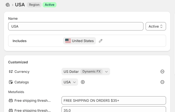 This approach is best suited to lightweight messages that change by Market. You’re not replacing full layout differences or complex logic, but you can adjust key details that guide buying decisions. Because metafields are editable by non technical staff, teams can update content independently from developers.