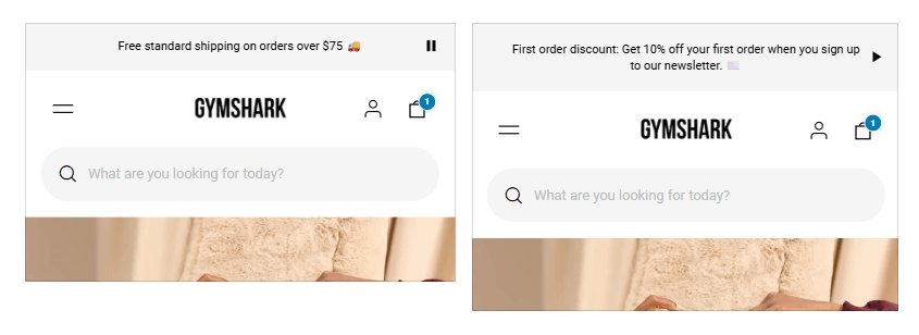 Some sites rotate messages in the announcement bar with a slider or carousel. For example: