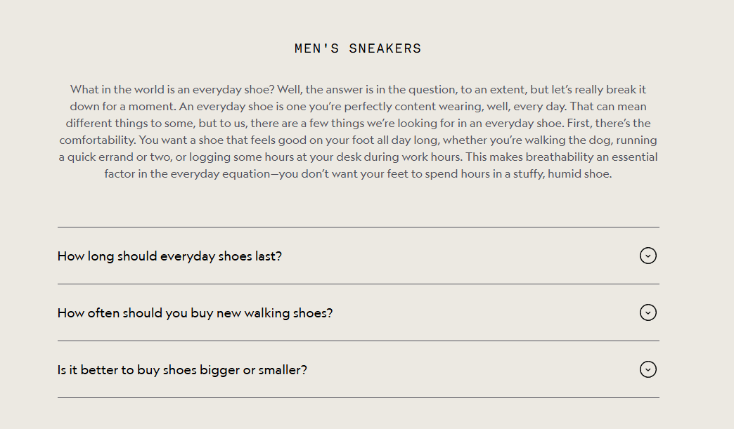 If your support inbox or chat shows recurring questions about a category, turn those into an FAQ at the bottom of the collection page. For example: