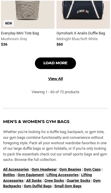 For conversion, focus on two content areas: the content above the product grid and the content at the bottom of the page.