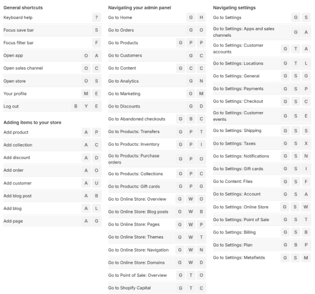 Shopify’s keyboard shortcuts aren’t hidden, but they’re not surfaced either.